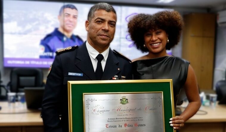 Proposta pela vereadora Stephane Rossi (PL), a honraria reconheceu Erivan pelos seus 33 anos de serviços prestados à GCM. “Quero agradecer de coração por tudo o que você tem feito por Osasco e vai fazer ainda. Mais que um líder, você é inspiração e referência para todos que têm a honra de caminhar ao seu lado”, disse a parlamentar.