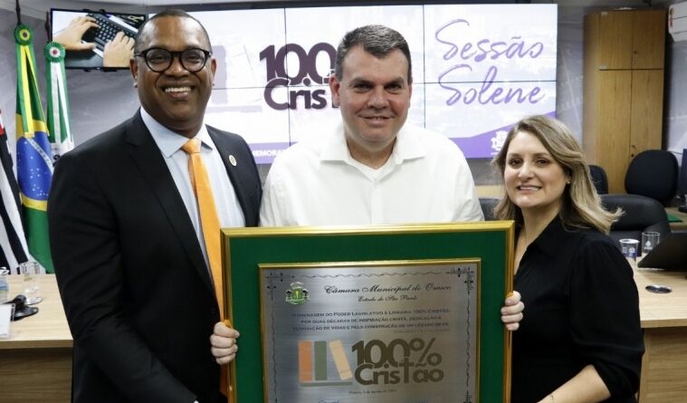 A Livraria 100% Cristão recebeu na noite desta quarta-feira (6), em Sessão Solene realizada na Câmara Municipal de Osasco, a honraria Placa Comemorativa, em reconhecimento aos trabalhos prestados ao município.