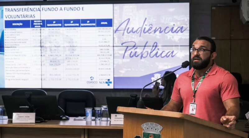 O município de Osasco destina 28% da arrecadação para a Secretaria de Saúde, 13% acima do mínimo exigido por lei. O dado foi apresentado durante a Audiência Pública de Prestação de Contas do 2º Quadrimestre de 2025, correspondente aos meses de maio a agosto, realizada na noite desta terça-feira (24), no Plenário Tiradentes da Câmara Municipal.